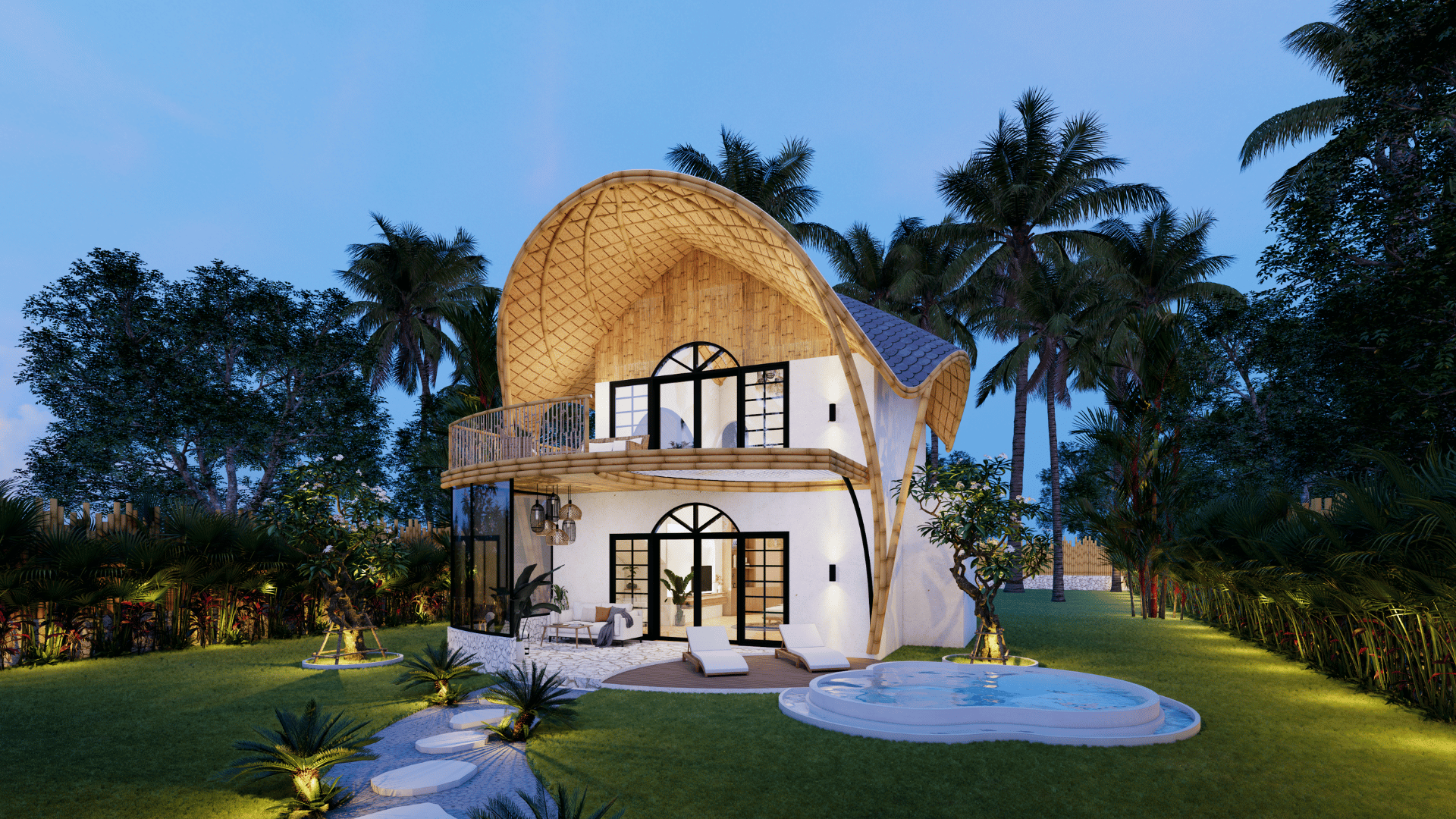 The bamboo structure and Ulin roof create a serene, organic feel, while the thoughtful layout makes this villa ideal for friends or families traveling together.